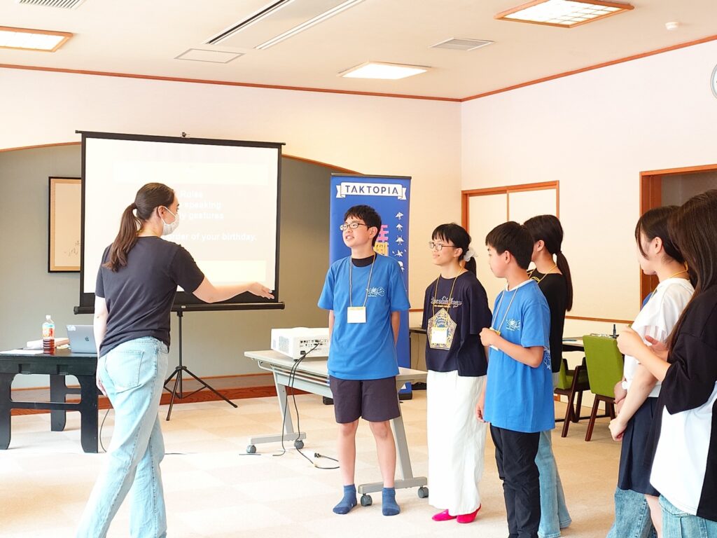 言葉を使わず、ジェスチャーだけで誕生日順に並んだり、英語で自己紹介したり、ビンゴをしたり……
