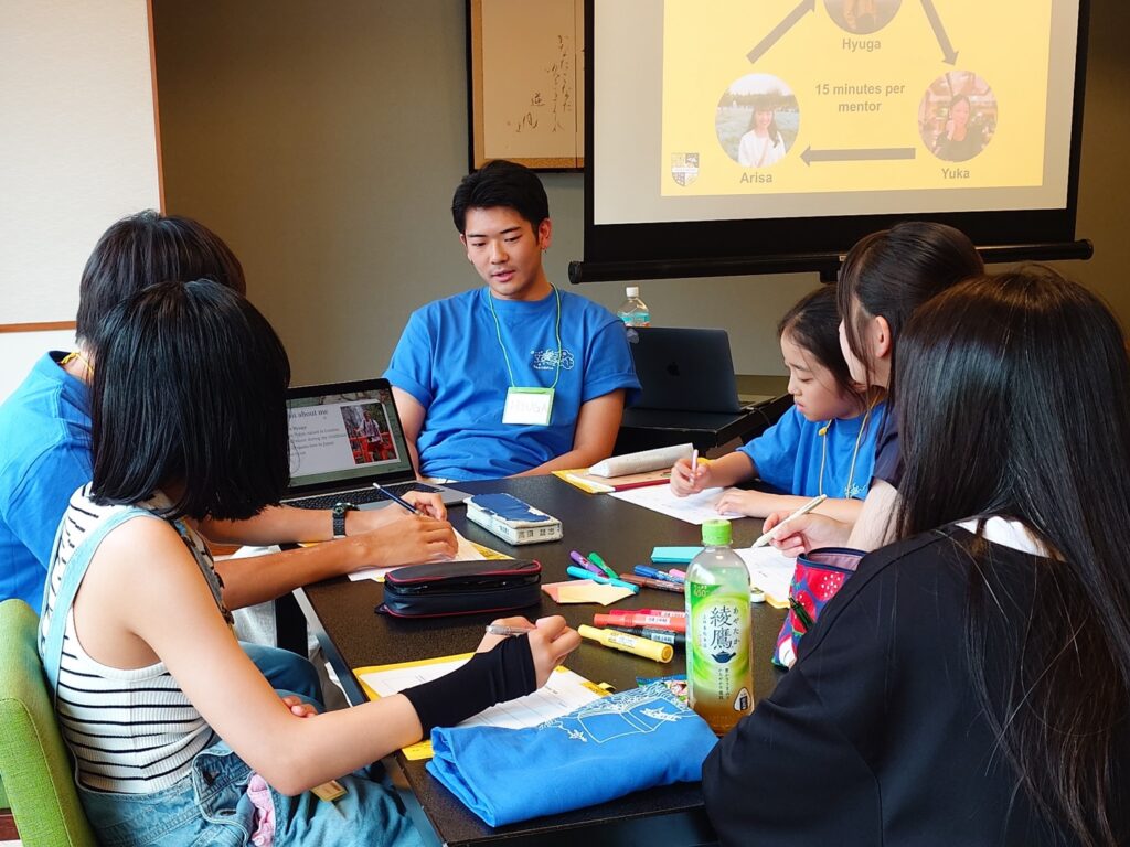 メンター紹介もありました。3チームに分かれて工夫をこらした自己紹介を行い、参加者たちにとっての一緒にがんばる仲間・支える大学生」として距離がぎゅっと近くなりました。参加者はたくさんのメモを取ってくれたり、質問をしてくれたりと、真剣に聞く様子が伝わってきました。
